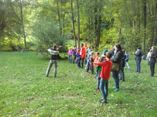 Am Tag der Abenteuer werden wir zwar keine Speerschleuder selbst herstellen – obwohl es einfach ist –, sondern uns der Herausforderung des richtigen Bewegungsablaufs stellen. Unter Anleitung erfährst du, wie du Schleuder und Speer halten musst und wie die Wurfbewegung ausgeführt wird. Wenn der Wurf klappt, kannst du versuchen, eine große Entfernung zu erreichen – oder aber ein Ziel zu treffen. Außerdem stehen verschiedene Schleuder- und Speerlängen zur Verfügung – findest du die für dich perfekte Kombination?