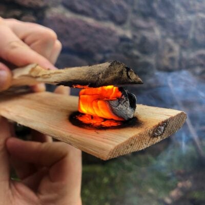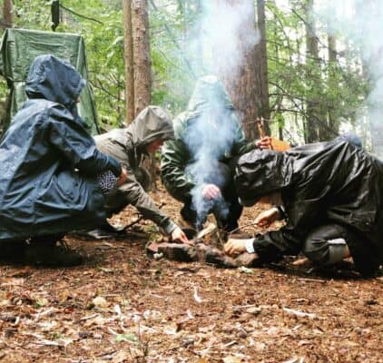 - Aufbau und Anzünden von Feuer ohne Streichholz