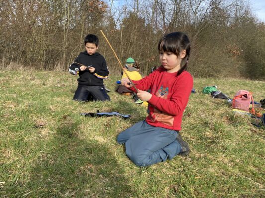 • Die Kinder mit nichtmotorisierten Werkzeugen Holz bearbeiten (Taschenmesser, Säge, Axt)